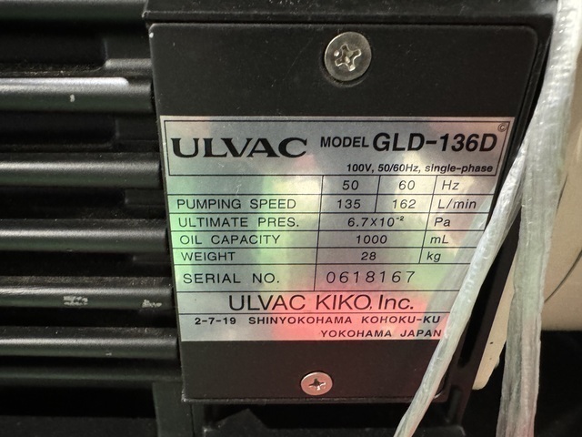油回転真空ポンプ アルバック GLD-136D